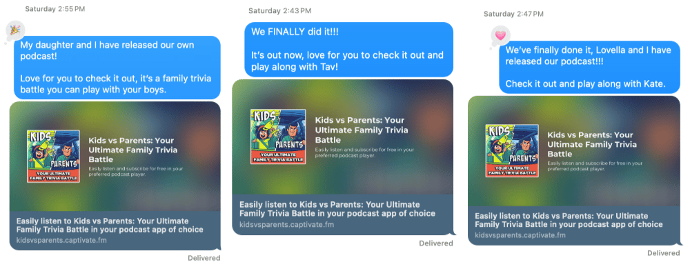 Each note felt personalized. I made sure to mention their kids by name, referenced their family, or reminded them of a special shared connection we had. Plus, every message included a single universal link, making it easy for them to join the show and listen in their preferred podcasting app.